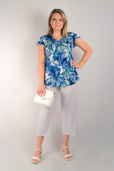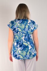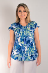 A stylish take on a classic women's tee, the Pacific Print short sleeve shirt is designed to freshen up your wardrobe. This gorgeous print features blues, purple and green in a stylish floral pattern. Made with a soft jersey fabric, our Splash top is tailored with a figure-flattering swing cut, curved hemline, and a cap sleeve to ensure you feel cool and comfortable all day long. We love the way this flattering v-neck top looks paired with palazzo pants, capris, or your favourite pair of denim jeans. Plus, it's versatile enough to wear for work, travel, or every day.