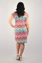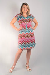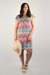 Easy, effortless, and essential-- our Taj Print short sleeve shift dress is destined to be your go-to outfit for every occasion. It features shades of pink and turquoise colours in a stylish geometric print. Made from a soft, jersey fabric for breathability and comfort, this printed knee length dress is hand-tailored with an a-line silhouette, curved hem, and features flattering cap sleeves that never restrict your arms or hold in heat. Add sneakers or sandals for a fun daytime look or dress it up for evenings or special events.