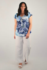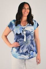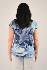 A stylish take on a classic women's tee, the Bloom Print short sleeve shirt is designed to freshen up your wardrobe. This gorgeous print features blue tones in a stylish floral pattern. Made with a soft jersey fabric, our Bloom top is tailored with a figure-flattering swing cut, curved hemline, and a cap sleeve to ensure you feel cool and comfortable all day long. We love the way this flattering v-neck top looks paired with palazzo pants, capris, or your favourite pair of denim jeans. Plus, it's versatile enough to wear for work, travel, or every day.