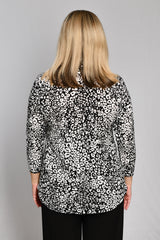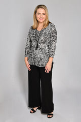 Upgrade your casual style with this 3/4 sleeve top which features our Leopard print. This gorgeous print combines black and white in a stylish leopard print pattern. Designed using a soft and breathable jersey knit fabric for a relaxed and comfortable fit, this women’s Leopard print top is easy to wear with palazzo pants, jeans, leggings, or a classic capri. You'll love the fit of the magyar cut sleeve, attractive v neck and curved hemline— it’s the perfect top for creating fashionable layers this season!