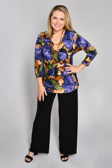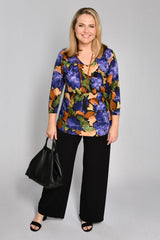 Upgrade your casual style with this 3/4 sleeve top which features our Maple print. This gorgeous print combines blue, green and brown colours in a stylish leafy pattern. Designed using a soft and breathable jersey knit fabric for a relaxed and comfortable fit, this women’s Maple print top is easy to wear with palazzo pants, jeans, leggings, or a classic capri. You'll love the fit of the magyar cut sleeve, attractive v neck and curved hemline— it’s the perfect top for creating fashionable layers this season!