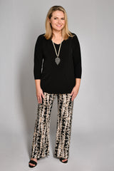 These versatile palazzo pants offer a stylish, straight leg look that can be dressed up or down. The gorgeous Tribal print features brown, black and white tones in a stylish snakeskin pattern. Designed without a side seam for a more flattering shape, these lightweight pants will give you a sleek look that is comfortable and chic.