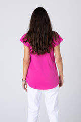This is not your average cotton t-shirt— it’s so much better! This medium weight cotton sports knit features a unique weave that keeps you cool and comfortable on hot, sunny days. It’s handcrafted with a classic cut to give you a slender look and curved hemline for enhanced shape. The easy wear fabric makes this hot pink an essential item for casual outings, weekends, or travel and it can easily be paired with shorts, pants, leggings or colourful capris.