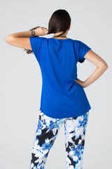 Breathe comfort into your daily life with the blue activewear short sleeve shirt. This lightweight sports knit features a unique weave for enhanced breathability that is designed to keep you cool and comfortable on hot, sunny days. It’s handcrafted with a swing cut and curved hemline to give you a slender look. Dress it up over jeans or colourful capris or wear this top over leggings when you're going to pilates, yoga, or the gym and you'll stay cool and look great!