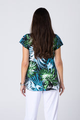 A stylish take on a classic women's tee, this Hawaii print short sleeve top, is designed to brighten up your wardrobe. Made with a soft jersey fabric, this top is tailored with a figure-flattering swing cut, curved hemline, and a cap sleeve to ensure you feel cool and comfortable all day long. We love the way this flattering v-neck top looks paired with palazzo pants, capris, or your favourite pair of denim jeans. Plus, it's versatile enough to wear for work, travel, or every day.