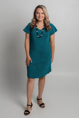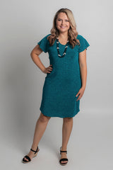 Stunning, striking and fabulous - our Aqua short sleeve sparkle shift dress is destined to shine at your next special occasion. It features a shimmery bronze glitter and is new to our Glitz and Glam collection. Made from a soft, jersey fabric for breathability and comfort, this printed knee length dress is hand-tailored with an a-line silhouette, curved hem, and features flattering cap sleeves that never restrict your arms or hold in heat. Add heels and a shimmery necklace or matching cowl neck scarf to make the perfect outfit for a wedding, evening event or special occasion.