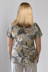 A stylish take on a classic women's tee, this Ash print longer sleeve shirt is designed to style up your wardrobe. Made with a soft jersey fabric, this top is tailored with a figure-flattering swing cut, curved hemline, and a longer sleeve to ensure you feel cool and comfortable all day long. We love the way this flattering v-neck top looks paired with palazzo pants, capris, or your favourite pair of denim jeans. Plus, it's versatile enough to wear for work, travel, or every day.