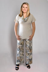 These versatile palazzo pants offer a stylish, straight leg look that can be dressed up or down. The gorgeous Ash print features grey, white and beige tones in a stylish decorative pattern. Designed without a side seam for a more flattering shape, these lightweight pants will give you a sleek look that is comfortable and chic.