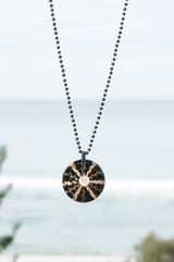 Every fashionable lady needs a piece of head-turning jewelry to complete her outfit-- and this pendant necklace is designed to do just that! Handcrafted with black lava beads and a shell insert pendant, this long necklace can be worn as a statement piece or layered with multiple colours for a more relaxed look. Plus, it looks great over a linen swing shirt, dressy top, or the finishing touch under a flowy kimono.