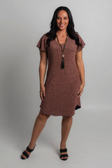 Stunning, striking and fabulous - our Bronze short sleeve sparkle shift dress is destined to shine at your next special occasion. It features a shimmery bronze glitter and is new to our Glitz and Glam collection. Made from a soft, jersey fabric for breathability and comfort, this printed knee length dress is hand-tailored with an a-line silhouette, curved hem, and features flattering cap sleeves that never restrict your arms or hold in heat. Add heels and a shimmery necklace or matching cowl neck scarf to make the perfect outfit for a wedding, evening event or special occasion.