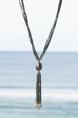 Every fashionable lady needs a piece of head-turning jewelry to complete her outfit-- and this Burmese Jade necklace is designed to do just that! Handcrafted with freshwater pearls, jade beads and a carved silver pendant, this long necklace can be worn as a statement piece or layered with multiple colours for a more relaxed look. Plus, it looks great over your favorite cami, dressy top, or a classy shift dress.