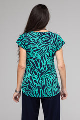 A stylish take on a classic women's tee, this Shard print short sleeve shirt is designed to brighten up your wardrobe. Made with a soft jersey fabric, our Paradise Island top is tailored with a figure-flattering swing cut, curved hemline, and a cap sleeve to ensure you feel cool and comfortable all day long. We love the way this flattering v-neck top looks paired with palazzo pants, capris, or your favorite pair of denim jeans. Plus, it's versatile enough to wear for work, travel, or every day.