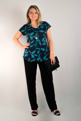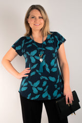 A stylish take on a classic women's tee, the Cool Mint print short sleeve shirt is designed to brighten up your wardrobe. This gorgeous print features teal colours in a stylish leafy pattern. Made with a soft jersey fabric, our Cool Mint top is tailored with a figure-flattering swing cut, curved hemline, and a cap sleeve to ensure you feel cool and comfortable all day long. We love the way this flattering v-neck top looks paired with palazzo pants, capris, or your favourite pair of denim jeans. Plus, it's versatile enough to wear for work, travel, or every day.