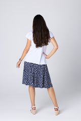 Breathe comfort into your daily life with the white shorter length jersey top. This lightweight jersey features a unique weave for enhanced breathability that is designed to keep you cool and comfortable on hot, sunny days. It’s handcrafted with a swing cut and curved hemline to give you a slender look. Especially designed to wear over a skirt, this top is available in all activewear and jersey colours.
