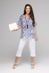 Set your sights on this fashionable and figure flattering swing shirt. It's the perfect top for work, weekends or that special occasion. Made with cool cotton, this classic shirt is thoughtfully designed with a tailored elbow length sleeve, shaped hemline and attractive round neck. The versatile design is comfortable, classy, and easy to dress up with cotton or linen capris or dress down with your favorite pair of denim jeans.