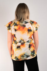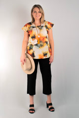 A stylish take on a classic women's tee, this printed short sleeve shirt is designed to brighten up your wardrobe. Made with linen fabric, our French Print top is tailored with a figure-flattering swing cut, curved hemline, and a cap sleeve to ensure you feel cool and comfortable all day long. We love the way this flattering top looks paired with cotton or linen capris or your favourite pair of denim jeans. Plus, it's versatile enough to wear for work, travel, or every day.