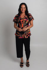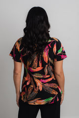 A stylish take on a classic women's tee, this Feather print longer sleeve shirt is designed to style up your wardrobe. Made with a soft jersey fabric, this top is tailored with a figure-flattering swing cut, curved hemline, and a longer sleeve to ensure you feel cool and comfortable all day long. We love the way this flattering v-neck top looks paired with palazzo pants, capris, or your favourite pair of denim jeans. Plus, it's versatile enough to wear for work, travel, or every day.
