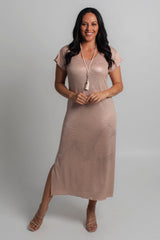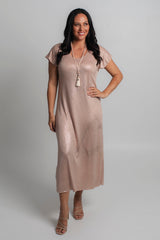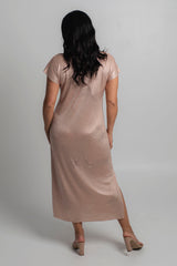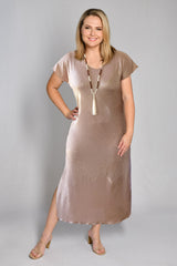 Effortless style meets all day comfort thanks to our Gatsby metallic shine jersey maxi dress, new to our Glitz and Glam collection. This style can easily be dressed up with heels and a shimmery necklace or matching cowl neck scarf, making it the perfect outfit for a wedding, evening event or special occasion.