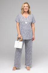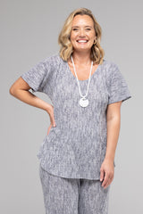 Upgrade your casual style with this flowy feminine knit top. Designed using a soft and breathable poly/rayon fabric for a relaxed and comfortable fit, this woman’s top is perfect to wear with our matching palazzo pants for an elegant dressy pantsuit. You'll love the fit of the seamless elbow length sleeve, flattering round neck, and curved hemline. For a  trendy casual look, wear over your favourite jeans, a pair of our colourful capri's or our print palazzo pants. This is a stylish top to transition from one season to the next!