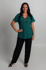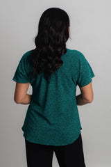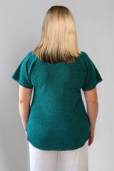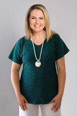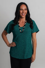 A dressed-up take on a classic women's tee, this Jade longer sleeve sparkle top is designed to style up your special occasion wardrobe and is new to our Glitz and Glam collection. Made with a soft jersey fabric, this top is tailored with a figure-flattering swing cut, curved hemline, and a longer sleeve to ensure you feel cool and comfortable all day long. We love the way this flattering top looks paired with palazzo pants and add a shimmery necklace or matching cowl neck scarf to make the perfect top for a wedding, evening event or special occasion.