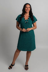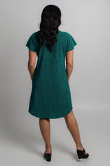 Stunning, striking and fabulous - our Jade short sleeve sparkle shift dress is destined to shine at your next special occasion. It features a shimmery bronze glitter and is new to our Glitz and Glam collection. Made from a soft, jersey fabric for breathability and comfort, this printed knee length dress is hand-tailored with an a-line silhouette, curved hem, and features flattering cap sleeves that never restrict your arms or hold in heat. Add heels and a shimmery necklace or matching cowl neck scarf to make the perfect outfit for a wedding, evening event or special occasion.