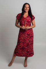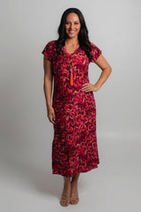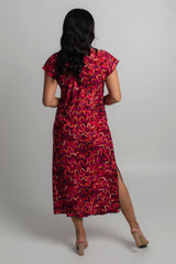 Effortless style meets all day comfort thanks to our Lipstick Print jersey maxi dress. The gorgeous Lipstick print features red, pink, purple and orange in a stylish artistic pattern. This style can easily be dressed up with sandals and a shimmery necklace making it the perfect outfit for a summer wedding, day at the beach, or night out with friends.