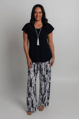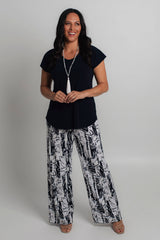 These versatile palazzo pants offer a stylish, straight leg look that can be dressed up or down. The gorgeous Marine print features navy and white in a stylish modern floral pattern, with raised white texture highlights. Designed without a side seam for a more flattering shape, these lightweight pants will give you a sleek look that is comfortable and chic.