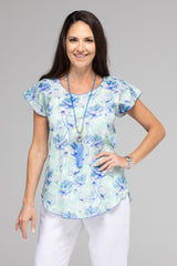 A stylish take on a classic women's tee, this Drops print shirt is designed to brighten up your wardrobe. Made with a non-crush jacquard cotton fabric, this top is tailored with a figure-flattering swing cut, curved hemline, and a cap sleeve to ensure you feel cool and comfortable all day long. We love the way this flattering v-neck top looks paired with cotton or linen capris or your favourite pair of denim jeans. Plus, it's versatile enough to wear for work, travel, or every day.