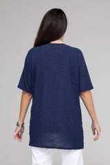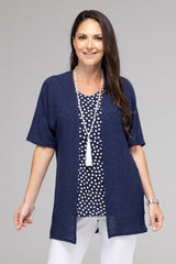 Top off your outfit with a stylish cardigan. Handcrafted with a straight cut and open front— you'll love the way this comfortable cardi looks over your favorite plain or printed top. Made from a soft poly/rayon fabric, this short sleeve, sky print cardigan is ultra breathable and stylish making it the perfect piece to layer over your favorite dress, bikini, or a t-shirt and jeans.
