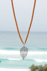 Finished with a stunning, oversized leaf pendant, this long beaded necklace adds a touch of boho style to your look. The orange beaded chain gives it a sophisticated pop of color that looks great paired with your favorite tunic, printed top or with a flirty swing dress. This long necklace is a jewelry box essential.