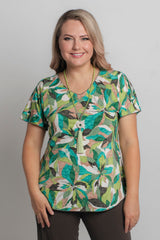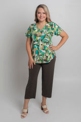 A stylish take on a classic women's tee, this Pandanus print longer sleeve shirt is designed to style up your wardrobe. Made with a soft jersey fabric, this top is tailored with a figure-flattering swing cut, curved hemline, and a longer sleeve to ensure you feel cool and comfortable all day long. We love the way this flattering v-neck top looks paired with palazzo pants, capris, or your favourite pair of denim jeans. Plus, it's versatile enough to wear for work, travel, or every day.