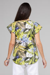 A stylish take on a classic women's tee, this printed short sleeve shirt is designed to brighten up your wardrobe. Made with linen and silk blend fabric, our Paradise Island Top is tailored with a figure-flattering swing cut, curved hemline, and a cap sleeve to ensure you feel cool and comfortable all day long. We love the way this flattering v-neck top looks paired with cotton or linen capris or your favourite pair of denim jeans. Plus, it's versatile enough to wear for work, travel, or every day.