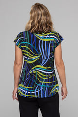 A stylish take on a classic women's tee, this Ribbons printed short sleeve shirt is designed to brighten up your wardrobe. Made with a soft jersey fabric, this top is tailored with a figure-flattering swing cut, curved hemline, and a cap sleeve to ensure you feel cool and comfortable all day long. We love the way this flattering v-neck top looks paired with palazzo pants, capris, or your favorite pair of denim jeans. Plus, it's versatile enough to wear for work, travel, or every day.