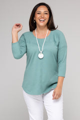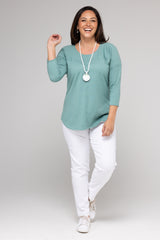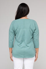 Upgrade your casual style with this 3/4 sleeve top. Designed using a soft and breathable Seafoam poly/cotton fabric for a relaxed and comfortable fit, this woman’s top is easy to wear with jeans, leggings or a classic capri pant. You'll love the fit of the magyar cut sleeve, flattering round neck, and curved hemline. This unique style slims down the figure with feature stitching on the front, back and yoke panels— it’s the perfect top to transition from one season to the next!