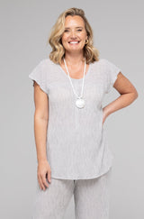 Upgrade your casual style with this top. Designed using a soft and breathable poly/rayon fabric for a relaxed and comfortable fit, this woman’s top is easy to wear with jeans, print long pants or a pair of our colourful capri pants. You'll love the fit of the soft cap sleeve, flattering round neck, and curved hemline. This unique style slims down the figure with feature stitching on the front, back and yoke panels— it’s the perfect top to transition from one season to the next!