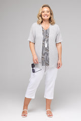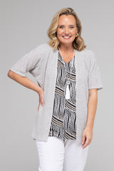 Top off your outfit with a stylish cardigan. Handcrafted with a straight cut and open front— you'll love the way this comfortable cardi looks over your favourite plain or printed top. Made from a soft poly/rayon fabric, this short sleeve, sky print cardigan is ultra breathable and stylish making it the perfect piece to layer over your favourite dress, bikini, or a t-shirt and jeans.