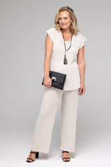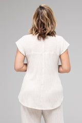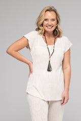 Upgrade your casual style with this top. Designed using a soft and breathable poly/rayon fabric for a relaxed and comfortable fit, this woman’s top is easy to wear with jeans, print long pants or a pair of our colourful capri pants. You'll love the fit of the soft cap sleeve, flattering round neck, and curved hemline. This unique style slims down the figure with feature stitching on the front, back and yoke panels— it’s the perfect top to transition from one season to the next!